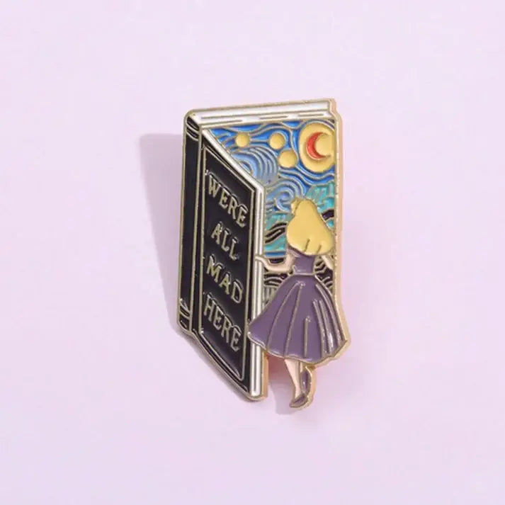 Whimsical Alice-Inspired “We’re All Mad Here” Book Pin