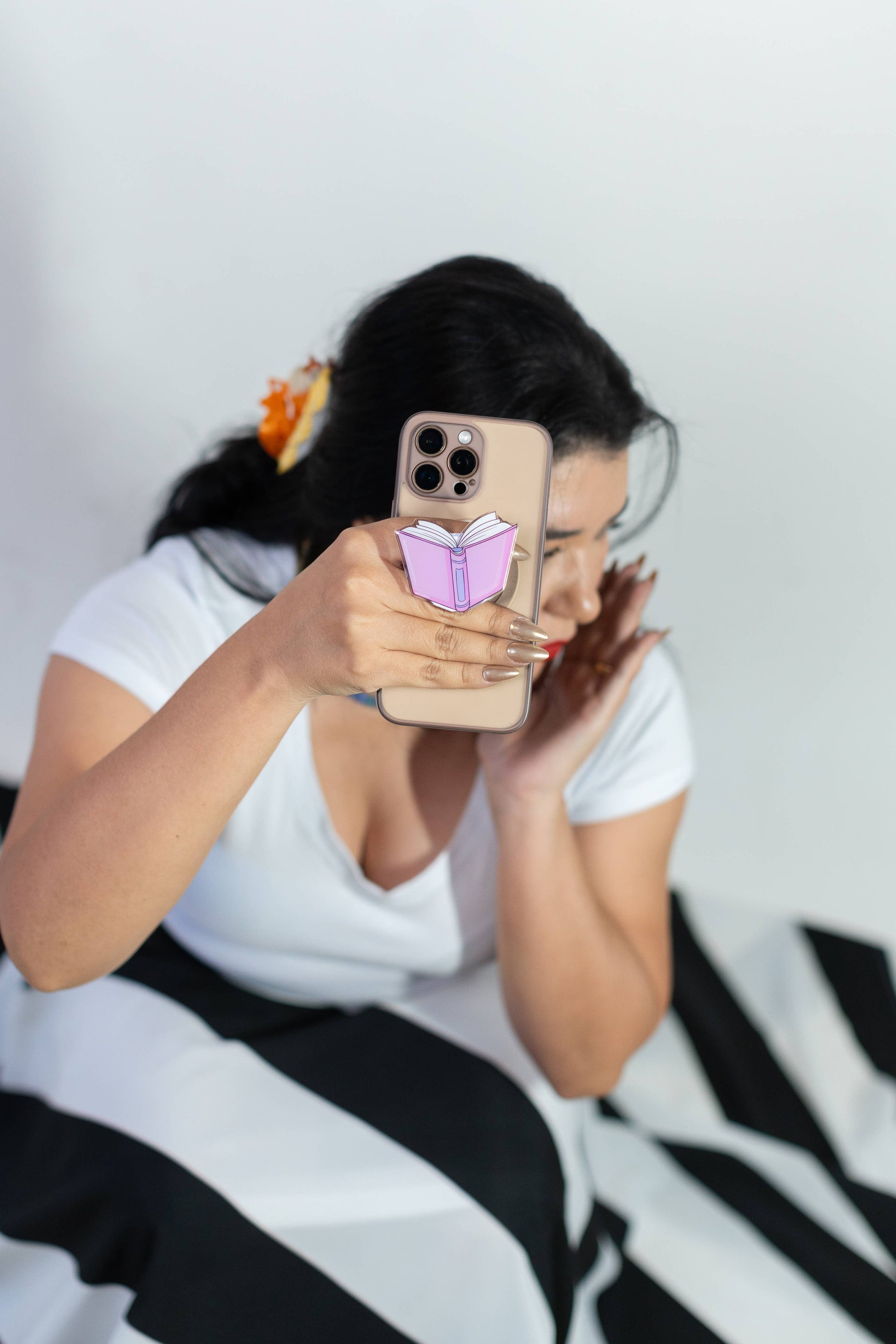 Introducing the "Call Me Bookish" phone grip by NatterDoodle – the perfect accessory for every proud book lover! Shaped like an open pink book, this charming phone grip adds a whimsical touch to your favorite reads or daily scrolling sessions. With strong 3M adhesive, it securely sticks to the back of your phone or case, giving you a reliable grip while showing off your love for all things literary. Whether you're catching up on your favorite e-book or snapping the perfect selfie, this bookish accessory ensures you stay stylishly connected. Treat yourself or gift a fellow bookworm!