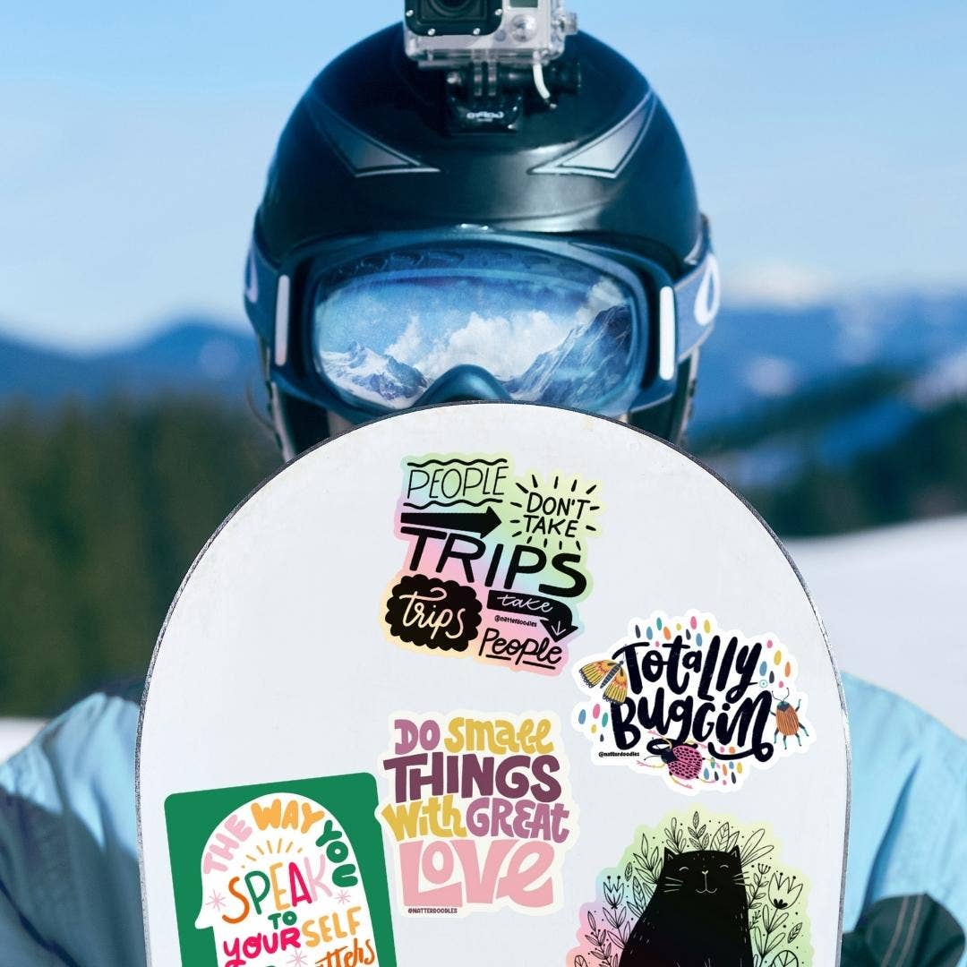 This die cut sticker features my signature hand lettering and design. Made from a durable vinyl with a laminate that protects your stickers from scratching, rain and sunlight.