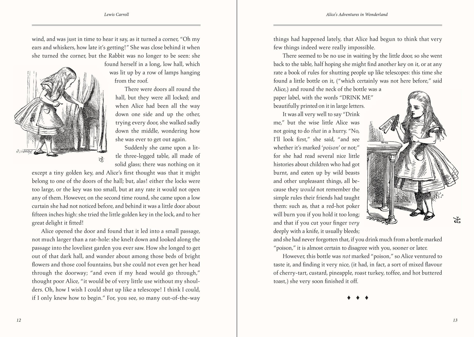 Step into the wonderful worlds of Alice's imagination in a handsome dual edition! Rediscover Lewis Carroll's classic tales in this elegant Masterpiece Library Edition, honoring the Peter Pauper Press founders' tradition of publishing beautiful books. Deluxe, durably bound hardcover keepsake volume. Embossed cover with iridescent highlighting. Foil-stamped spine. Reinforced cloth quarter-binding for durability. Premium acid-free archival-quality paper for longevity. Cream-color pages with font, type size, and line spacing chosen for a comfortable reading experience, even under imperfect lighting. John Tenniel's iconic illustrations adorn both childhood favorites. Comes with a matching ribbon bookmark with which to keep your place. For every home library. 240 pages.